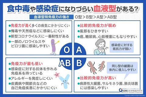 食 中 毒 や 感 染 症 の な り や す さ は 血 液 型 で 変 わ る!?そ れ ぞ れ で 注 意